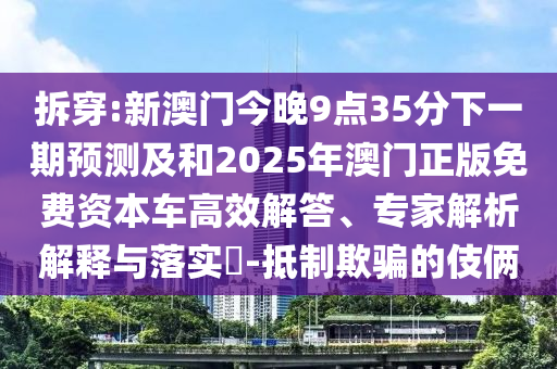 拆穿:新澳門今晚9點35分下一期預(yù)測及和2025年澳門正版免費資本車高效解答、專家解析解釋與落實?-抵制欺騙的伎倆