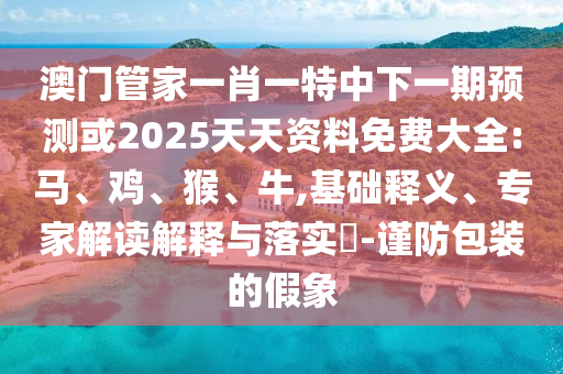 關(guān)于澳門管家一肖一特中下一期預(yù)測(cè)或2025天天資料免費(fèi)大全:馬、雞、猴、?!?jǐn)防包裝的假象,我們可以從全面釋義、專家解讀與落實(shí)等方面進(jìn)行深入解析。