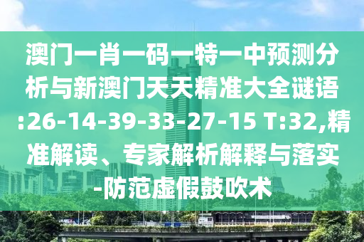 澳門一肖一碼一特一中預(yù)測(cè)分析與新澳門天天精準(zhǔn)大全謎語(yǔ):26-14-39-33-27-15 T:32,精準(zhǔn)解讀、專家解析解釋與落實(shí)-防范虛假鼓吹術(shù)