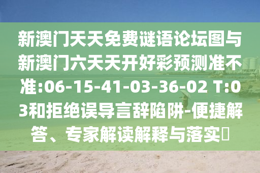 新澳門(mén)天天免費(fèi)謎語(yǔ)論壇圖與新澳門(mén)六天天開(kāi)好彩預(yù)測(cè)準(zhǔn)不準(zhǔn):06-15-41-03-36-02 T:03和拒絕誤導(dǎo)言辭陷阱-便捷解答、專家解讀解釋與落實(shí)?