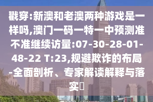 戳穿:新澳和老澳兩種游戲是一樣嗎,澳門一碼一特一中預測準不準繼續(xù)訪量:07-30-28-01-48-22 T:23,規(guī)避欺詐的布局-全面剖析、專家解讀解釋與落實?