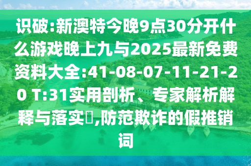 新澳特今晚9點(diǎn)30分開(kāi)什么游戲晚上九與2025最新免費(fèi)資料大全:41-08-07-11-21-20 T:31的實(shí)用剖析、專(zhuān)家解析解釋與落實(shí)?