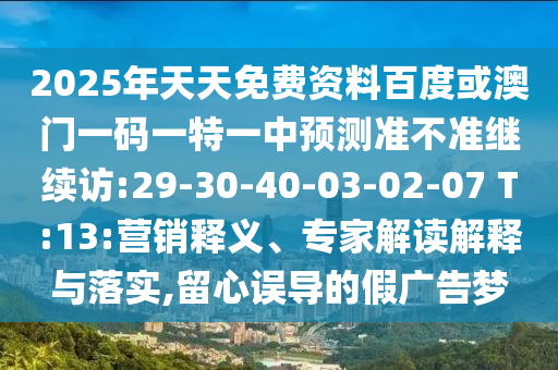 2025年天天免費(fèi)資料百度或澳門一碼一特一中預(yù)測準(zhǔn)不準(zhǔn)繼續(xù)訪:29-30-40-03-02-07 T:13:營銷釋義、專家解讀解釋與落實(shí),留心誤導(dǎo)的假廣告夢