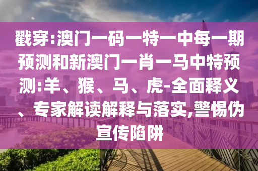關(guān)于戳穿澳門一碼一特一中每一期預(yù)測(cè)和新澳門一肖一馬中特預(yù)測(cè),以及羊、猴、馬、虎等相關(guān)關(guān)鍵詞的解讀與警惕虛假宣傳的提醒